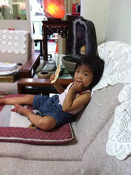 剛從公園玩回來 洗完澡 吃了兩大片米香
